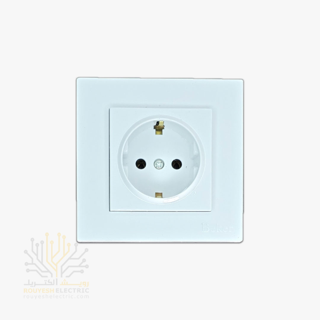 پریز برق ارت دار تو کار بکر با مغری سرامیکی مدل آسان سفید